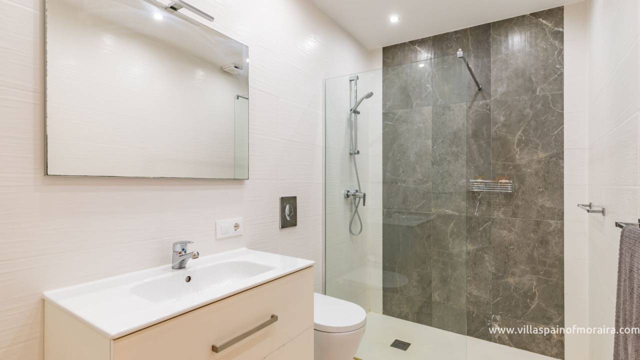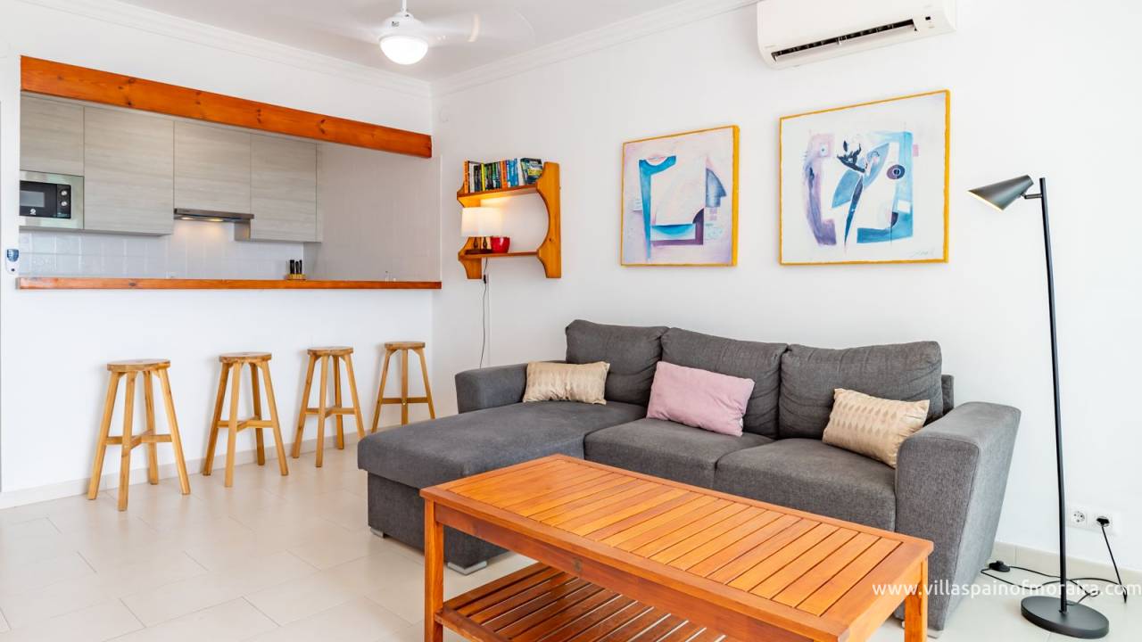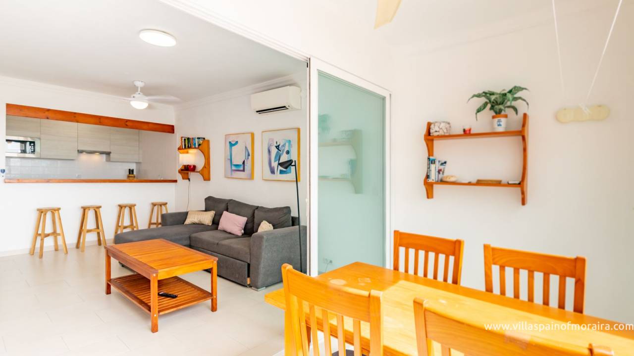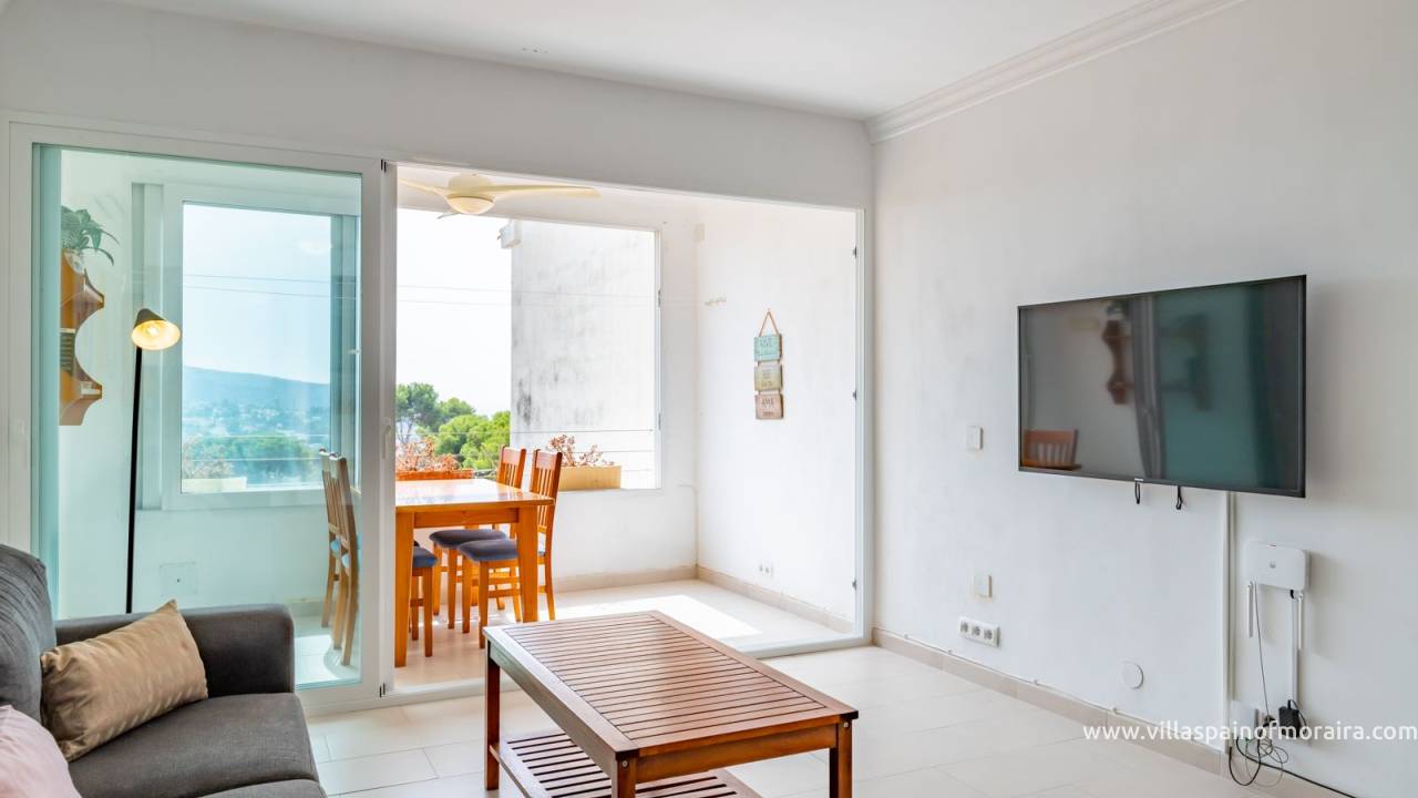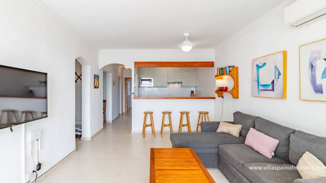 This two bedroom apartment located in the popular La Sabatera area of Moraira has sea views.