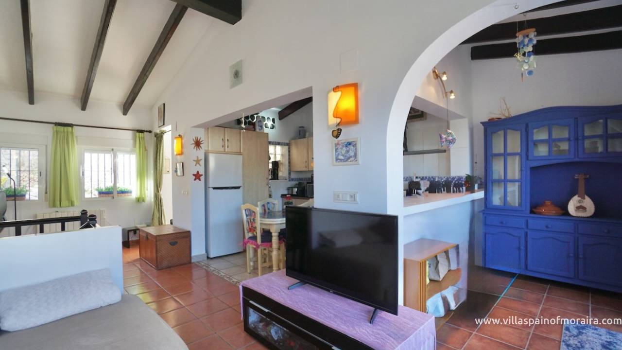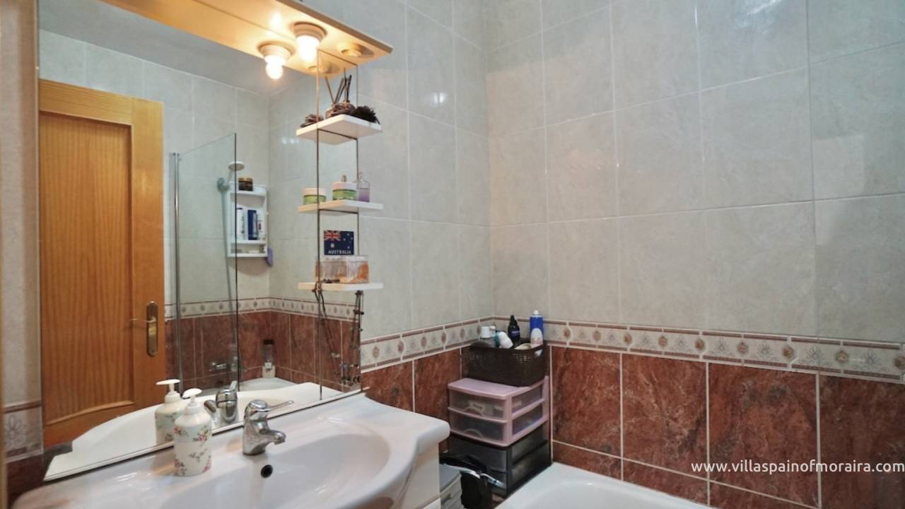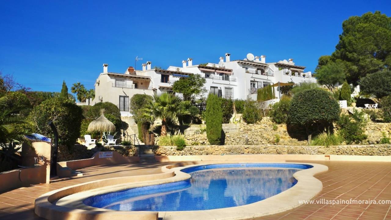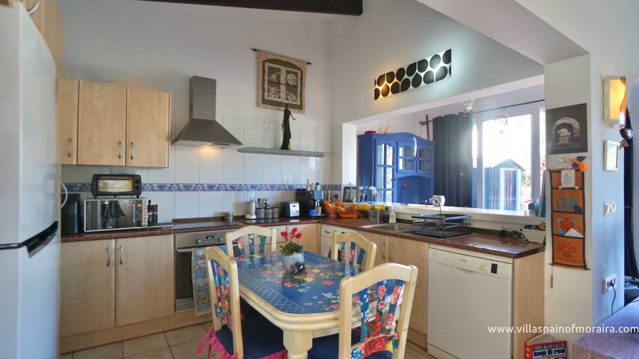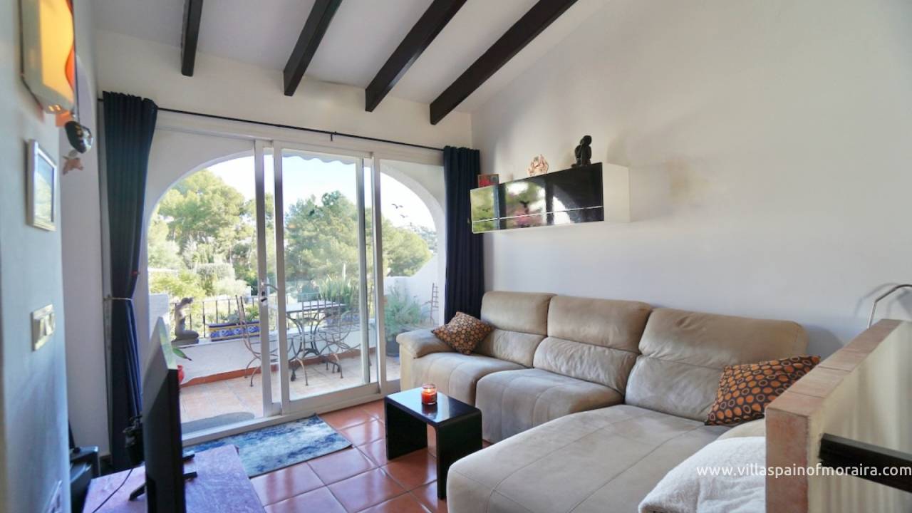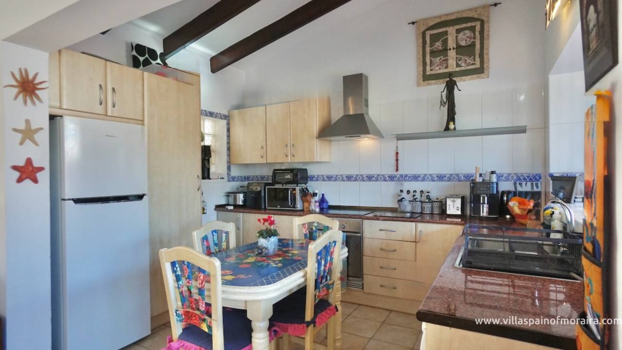 This large terraced property in the popular Tabaira area of Moraira, has accommodation on two levels. The entrance on the upper level leads in to the bright open-plan kitchen and living area filled with natural daylight. Large sliding doors from the living space open directly to a private balcony.