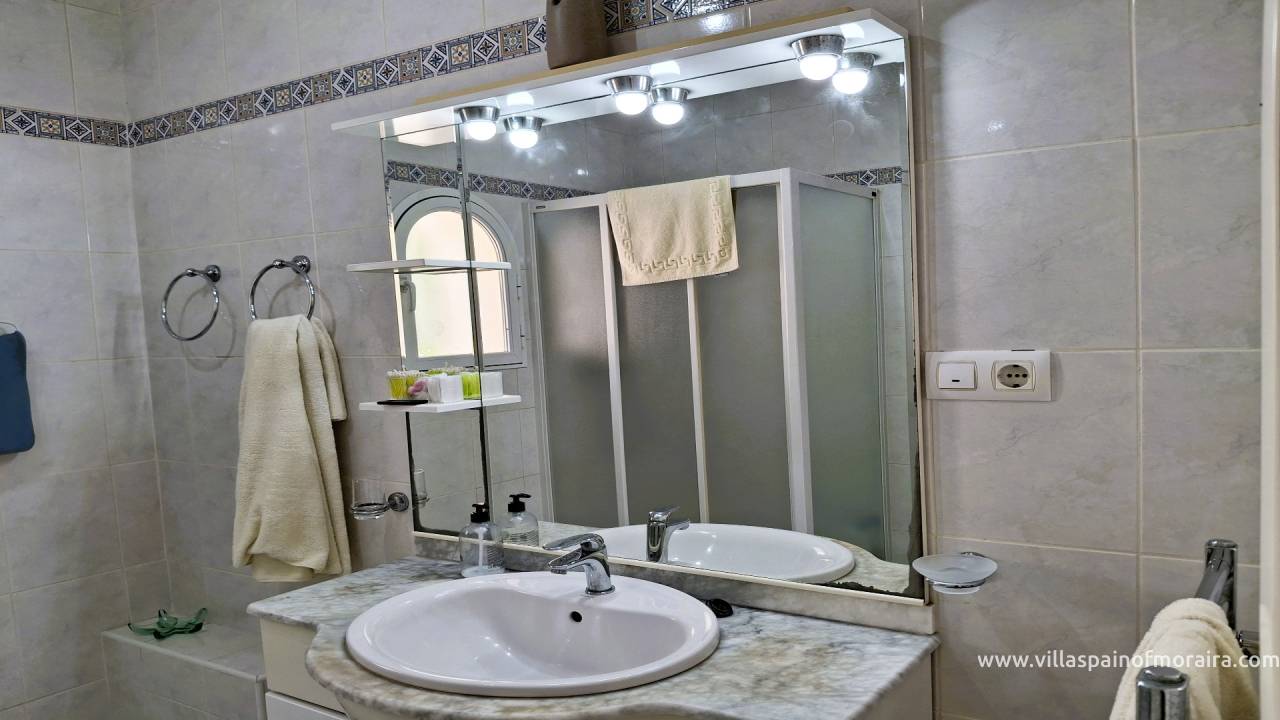 Most of the property benefits from double glazed UPVC windows and doors. This light and spacious villa with good sea views is in a quiet residential area with good links to the towns of Moraira, Benissa and Calpe, all of which are just a few minutes drive away.